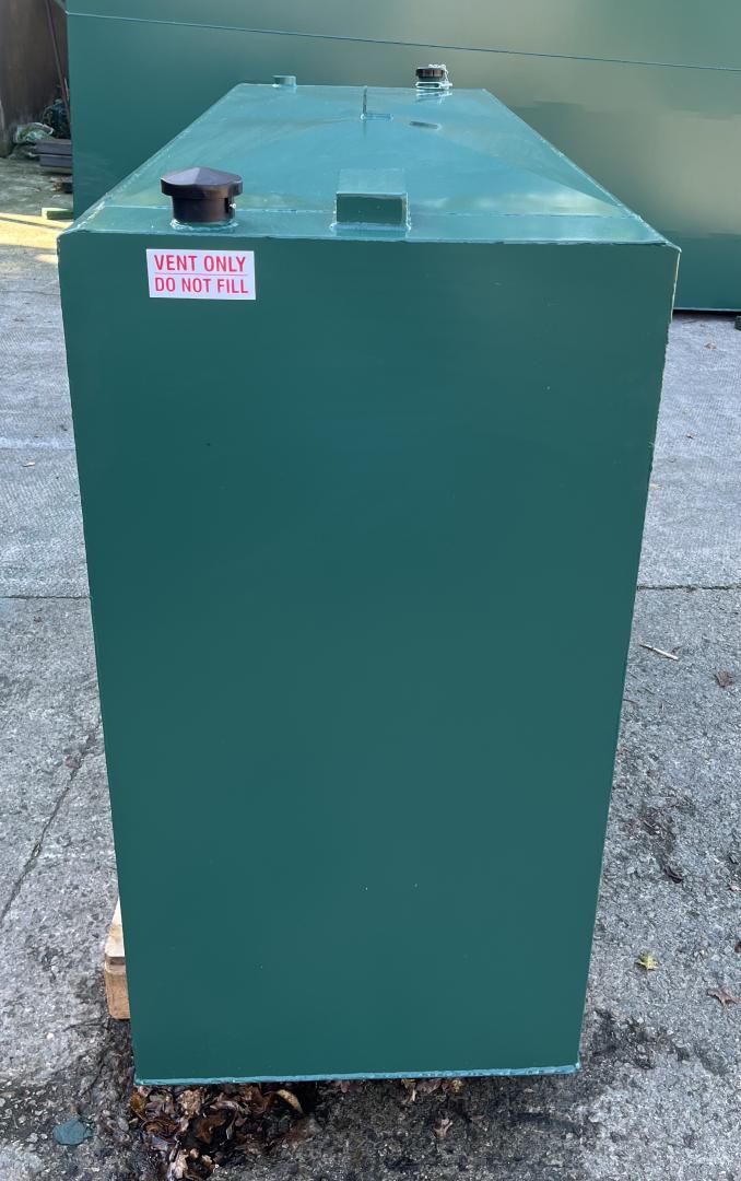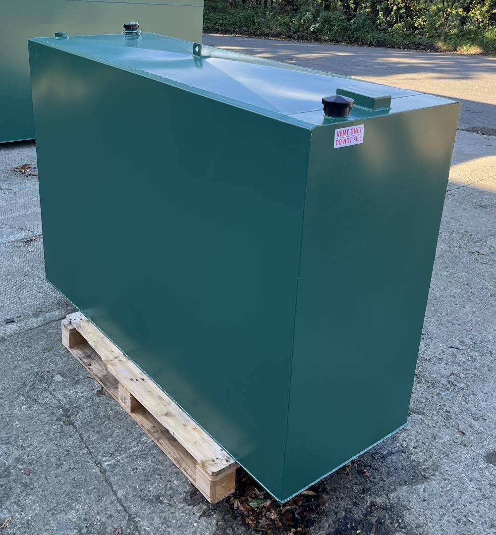 Buy direct from the manufacturer! DIMENSIONS: Length 1830mm, Width 650mm, Height 1220mm approx plus 75mm channel runners. CAPACITY: Approx 1250 Litres. WEIGHT: Approx 245 kg. PRODUCT DETAILS: Our steel bunded fuel tanks or double skinned tanks are designed for the safe storage of heating oil, diesel and gas oil, constructed to prevent spillage of their contents into the environment. They hold a minimum of 110% of the stated contents, thus ensuring the safety of the surrounding area from contamination. Manufactured to comply with UK regulations. STEEL: Our 1250 litre steel bunded oil tanks are made from 2mm inner and outer steel thickness - thicker steel available upon request at extra cost. FITTINGS INCLUDED: FREE Clock type contents gauge FREE Outlet kit including isolation valve and filter 1.5" fitting for Clock type contents gauge 2" Vent including cap, 2" Fill with cap and chain, 1" BSP Bottom Outlet, Lifting eye, Internal bracing, Channels runners (to lift the tank off the ground). PAINT: All of our tanks are sprayed with an undercoat and top coat of Holly Bush Green (RAL 14C39). Other colours are available at an extra charge, please email us the RAL code for a quote. Please note this tank does have Channel runners (to lift the tank off the ground) please see the '1250 Litre Bunded Steel Heating Oil Tank - No Channel Runners' if you do not require these. FREE STANDARD SHIPPING to mainland UK only (excluding postcodes IV, AB, HS, KW, AB, DD, FK, PH, TR, G, PA, KA, All Central London. Please complete our online contact form with your postcode and size of tank you require for a delivery quote to these areas). Free shipping is kerbside delivery only, this could be a large lorry, it is the customers responsibility to make sure there is adequate space for access and offloading. Customer is responsible for the positioning and installation of the tank. Please see the Delivery information in the terms and conditions for more details. Tanks are made to order and have a variable lead time. Our current lead-time is approximately 2/3 weeks. We will contact you by email when your tank goes in to production and again when it is sent out for delivery.
